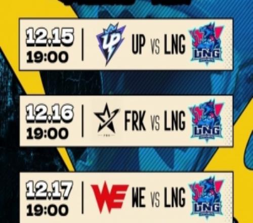 电竞体育12月14报道 LNG发布德杯阵容名单和赛程:全主力出战!对阵UP FRK和WE;